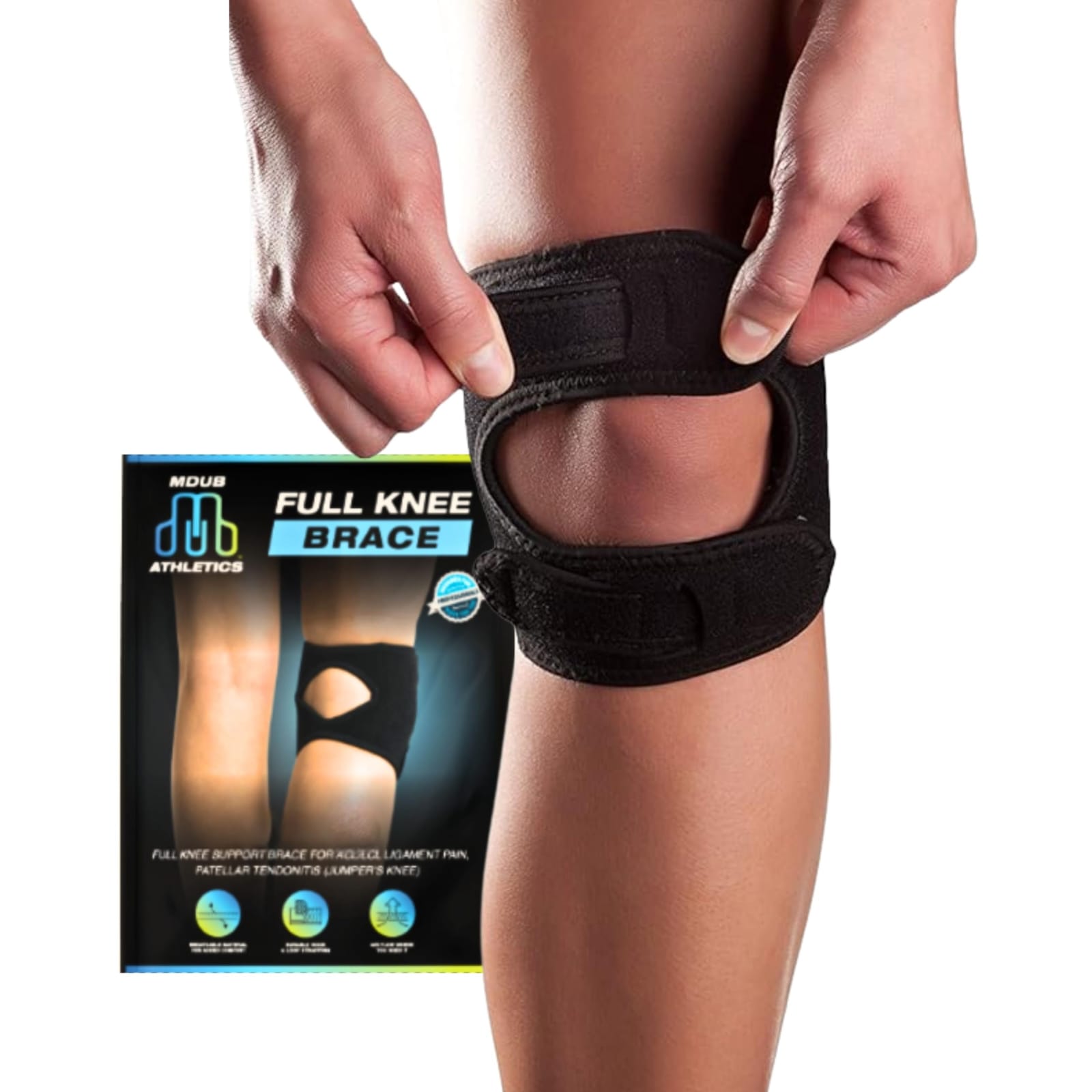 Muévete con confianza: nuestra correa de rodilla para tendón de rótula cuenta con un diseño de soporte de cara abierta, lo que permite una gama completa de movimiento durante las actividades. Esta correa de soporte rotuliano soporta el movimiento de los atletas, ofreciendo un ajuste seguro y de apoyo para cada movimiento