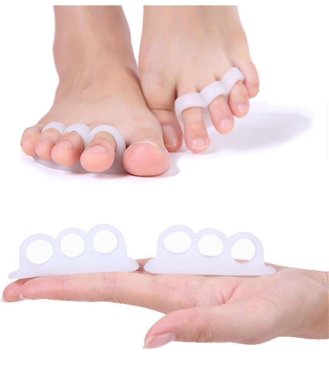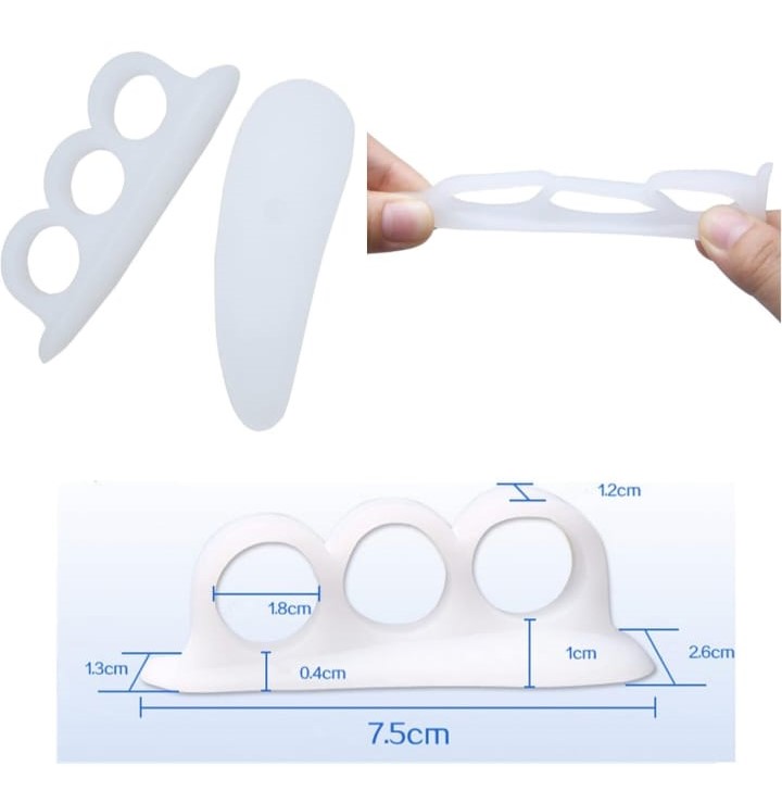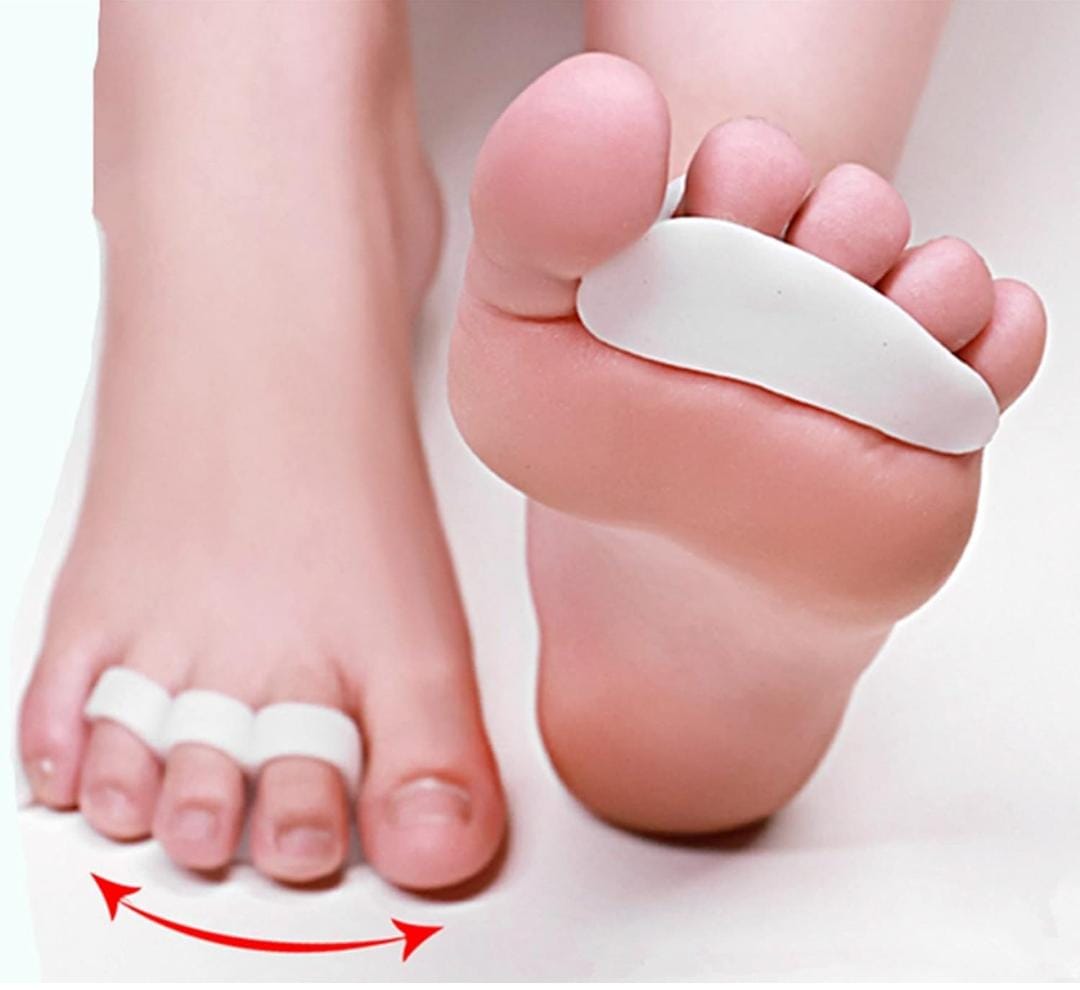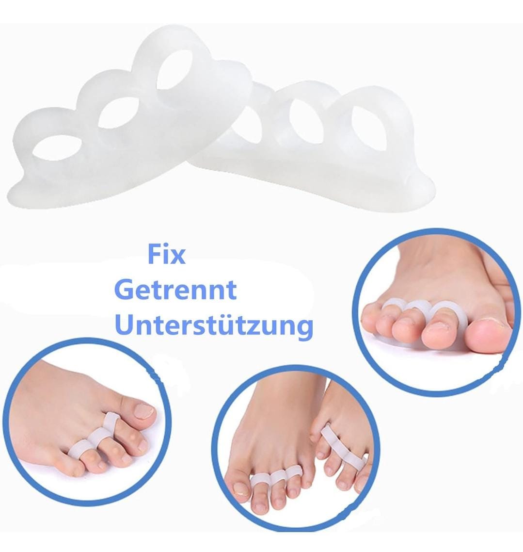 2) Juego de 4 separadores de dedo del pie: el juego incluye 4 almohadillas de gel que te ayudan a mantener los dedos de los pies en su lugar. Esto evita la presión desagradable y el roce molesto para mayor comodidad, menos dolor y más calidad de vida.